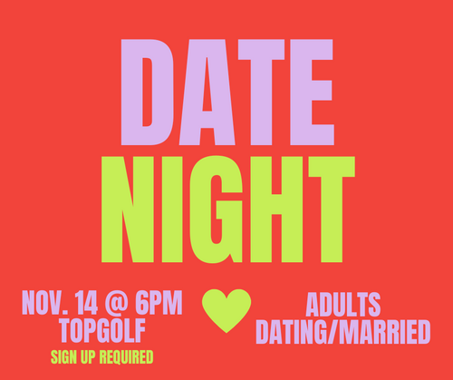 Dating/Married Couples! It's date night! Join us at Topgolf. Please make sure to sign up. Cost will be determined based on number of couples.